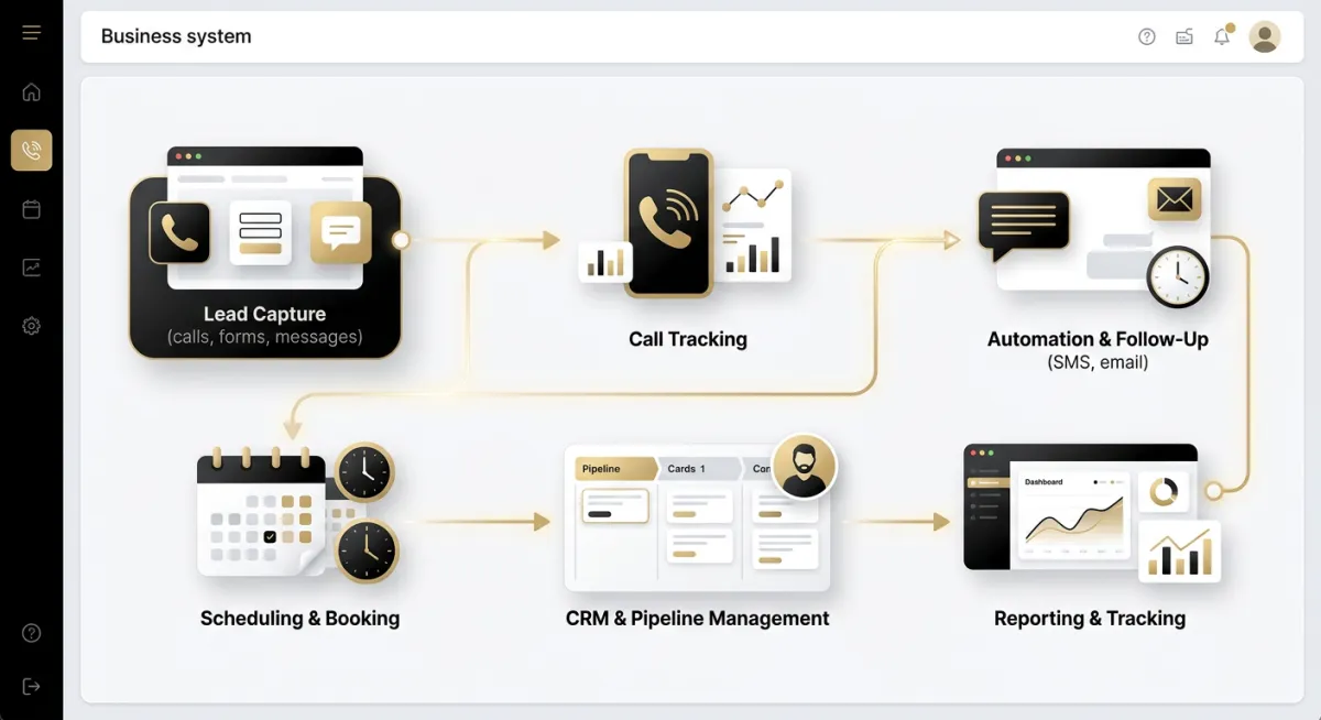 From lead capture to follow-up, booking, and pipeline management, we build connected systems that help your business respond faster, stay organized, and convert more opportunities.
